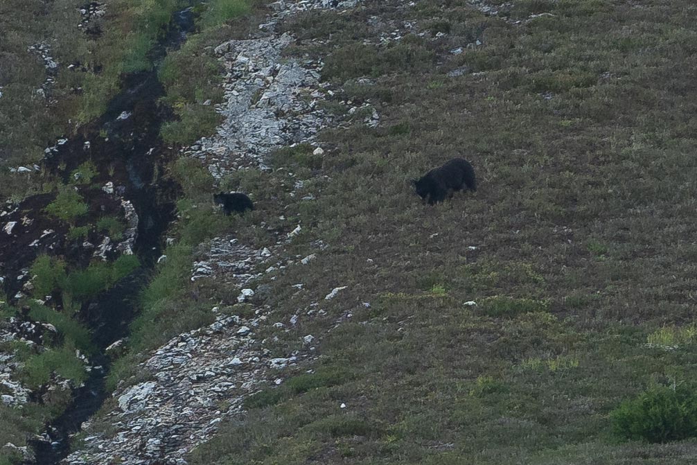 I’d read that most other hikers (at least the ones who wrote trail reports on WTA) had spotted bears here, so we called out and clapped for the majority of our trip. This paid off as we came upon the Tapto Lake basin, where we spotted a mama bear and her cub near the western-most lake. We shouted fairly often to remind them we were sharing the space, and kept a close eye as we started setting up camp and taking photos of the picturesque Whatcom Peak. Thankfully, they kept their distance while crossing the scree fields before heading out of the basin. It was both nerve-wracking and amazing to witness!